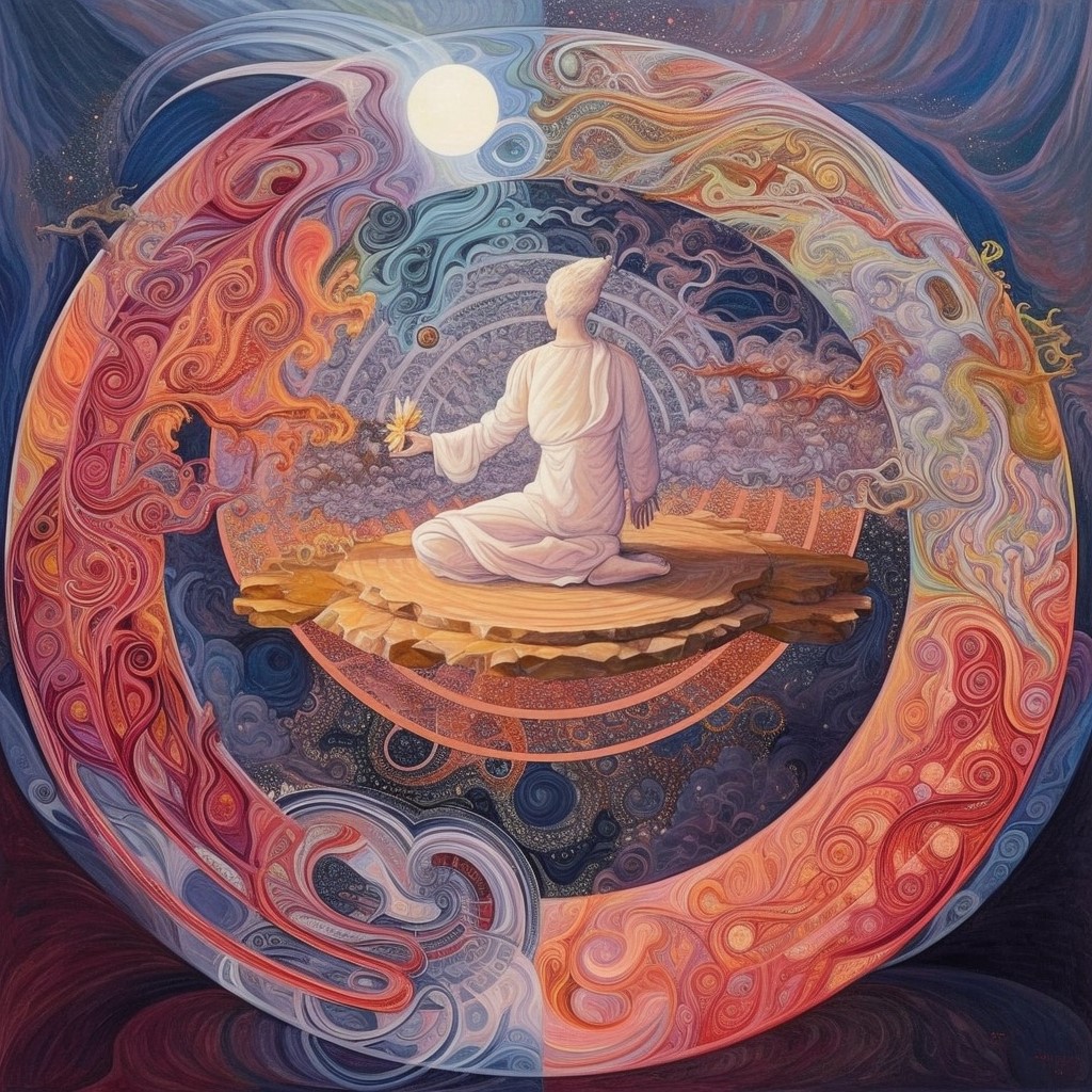 During another encounter, while I was wrestling with the relinquishment of external influences, this resplendent orb approached again, radiating its gentle light upon me. Its size was colossal, rivaling the tallest of mankind, and it was accompanied by another similar entity. From them emanated two voices, as harmonious and distinct as the notes on a musical scale – one masculine, one feminine. They echoed in a symphonic rhythm, expressing in unison the choice I needed to make – the flesh or the spirit.