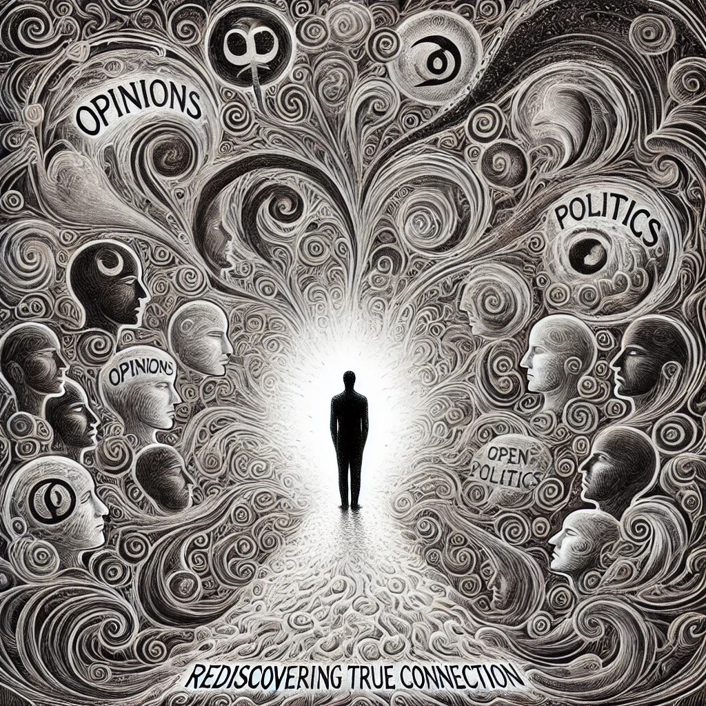 In today’s world, people seem more divided than ever, holding fiercely to their views, particularly political ones. Politics, though meant to enable us to live peacefully, has instead become a battleground for intense personal and ideological conflict. This strong focus on political opinion distracts us from life’s truer priorities—our families, our careers, and the things we create and cherish. Imagine a society where, instead of constantly engaging in political discourse, we talked more about the love and strength found in family, in meaningful work, and in creative pursuits.