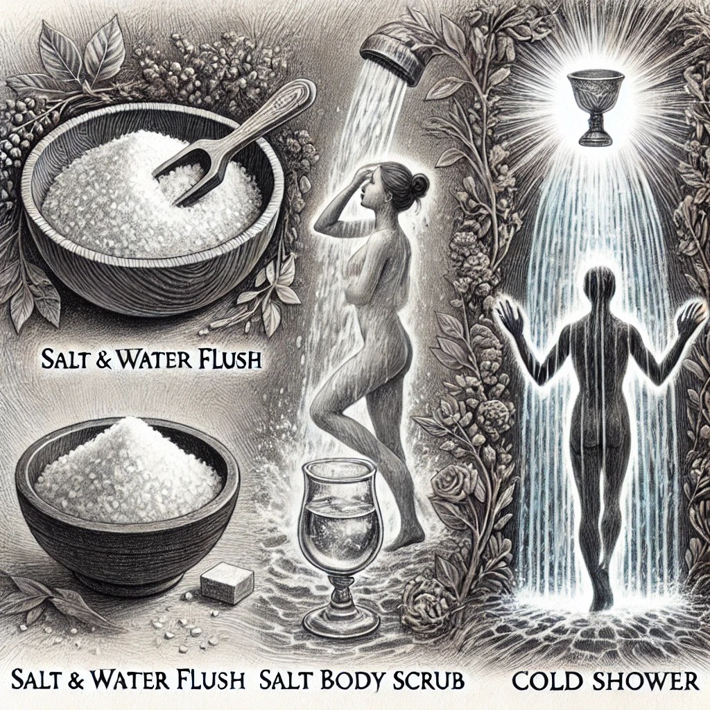 - Salt Body Scrub: Rub Himalayan salt on your skin during a shower, focusing on areas like the forehead, symbolizing spiritual purification. The salt draws out toxins and repels parasitic influences, both physical and spiritual.
